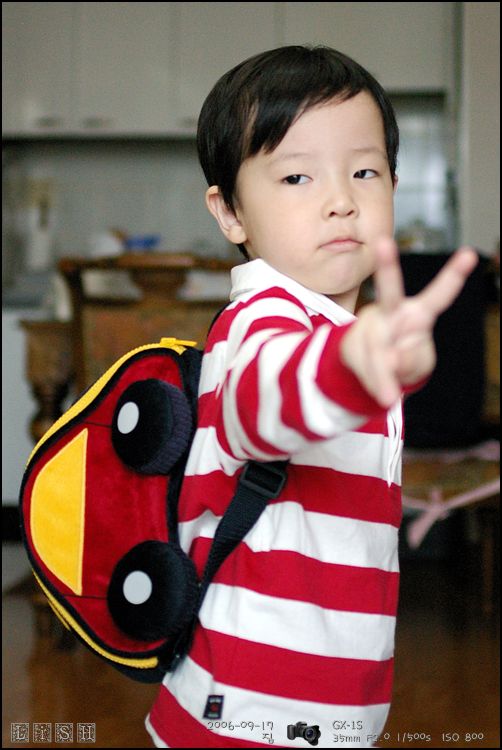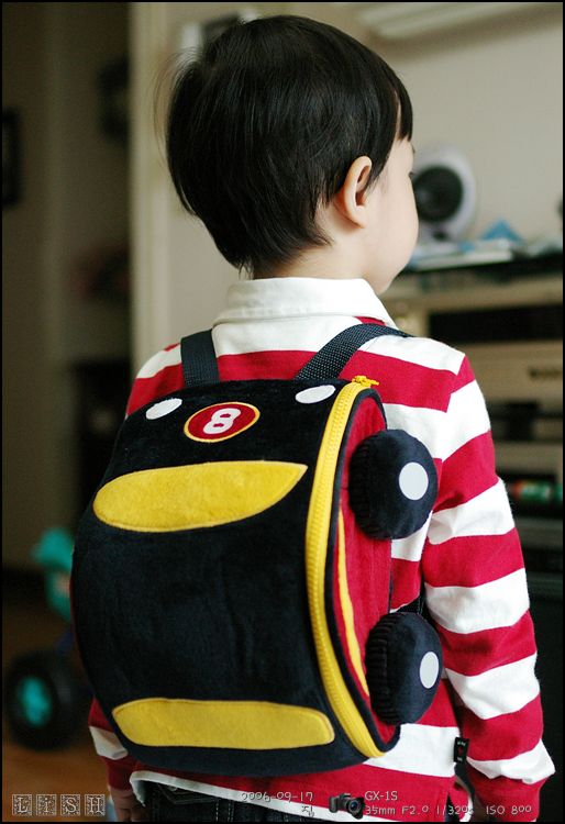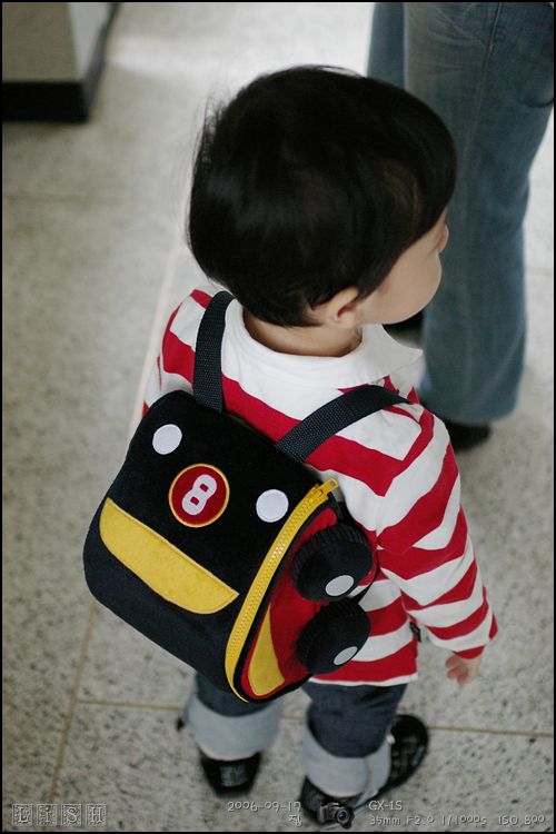 상윤이가 애타게 기다리던 “차가방”이 왔습니다. By lbnkorea | 2006-09-19 0 Comment 이번 사진은 가방이 주인공.카리스마 브이.귀엽다. 짐보리 사이트 구경할 때 이미지 보고 졸라서 결국 엄마한테 얻어낸 가방. 차가방 빨리 안온다고 맨날 노래를 부르다가 드디어 받았다. 어찌나 좋아하는지… 조그만게 이쁘긴 이쁘다. 가격도 싸다. 12불 정도..