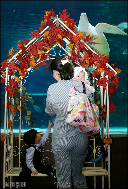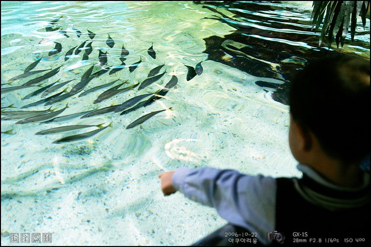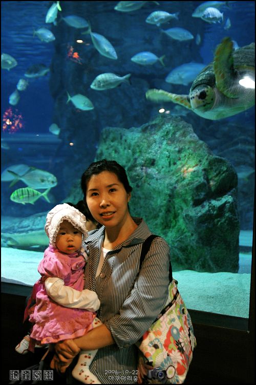 새로 만든 포토존. 한쪽 벽이 몽땅 유리다. 유리 뒤는 물론 수족관.