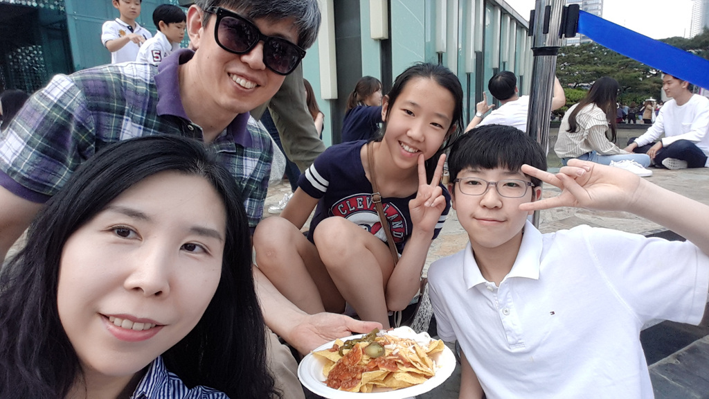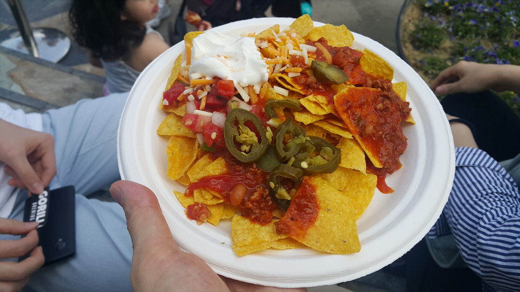 무역센터 앞쪽광장에서는 먹거리 축제를 해서 나쵸 한접시 사먹었다.