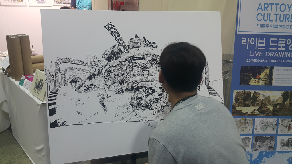 전시장 내에서 작가가 직접 그림그리는 걸 보여주는 라이브 드로잉..