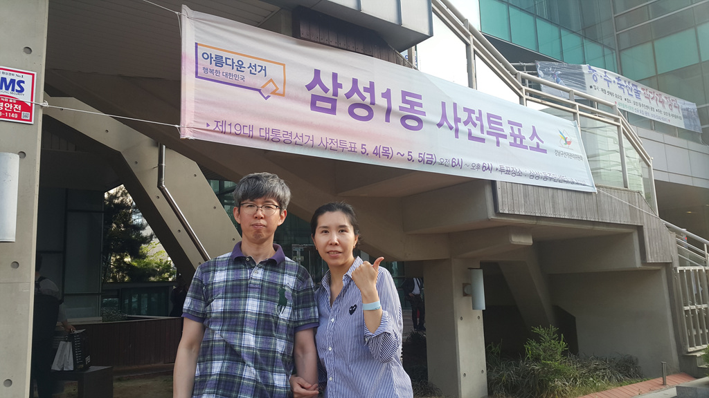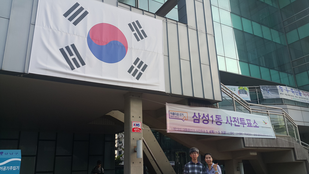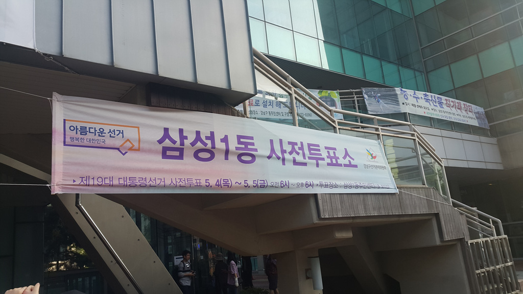 사진이 거꾸로 배치됐다. 끝나고 나오는 길에 삼성동 투표소에서 사전투표하고 왔다.