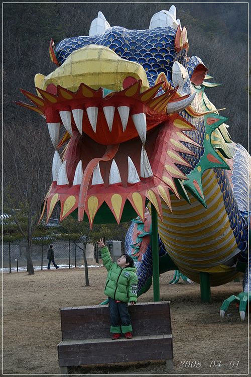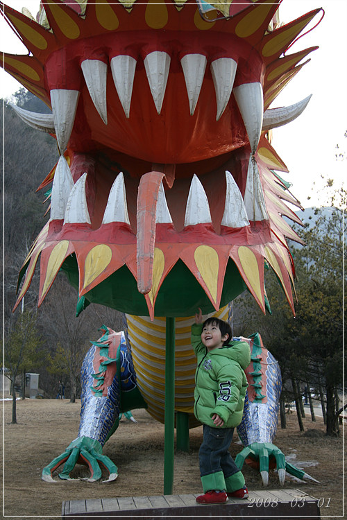 대명 온천에서 나와서 케로로와 뽀로로 앞에서...