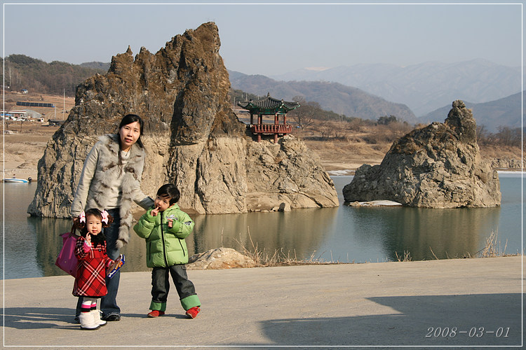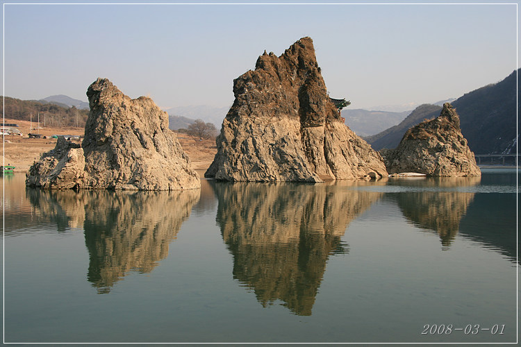 막히는 길을 통과하여 오후 네시쯤에야 간신히 도착한 곳은 단양팔경중 하나인 도담삼봉.