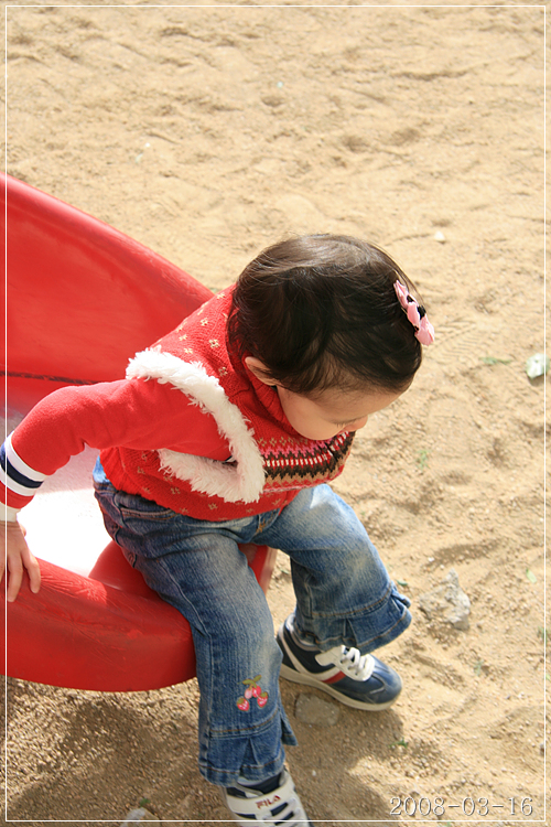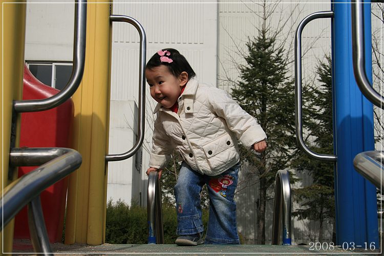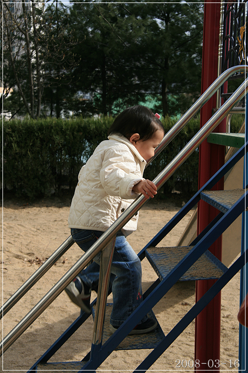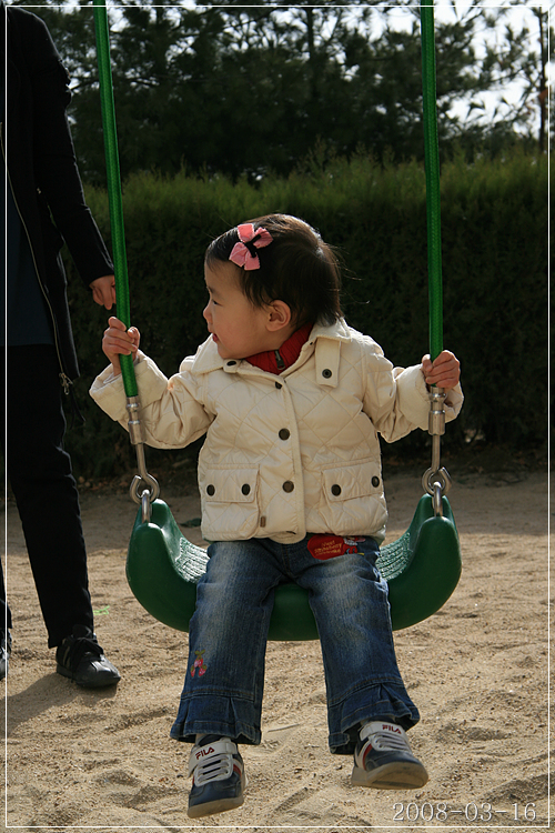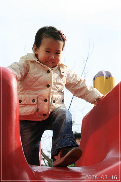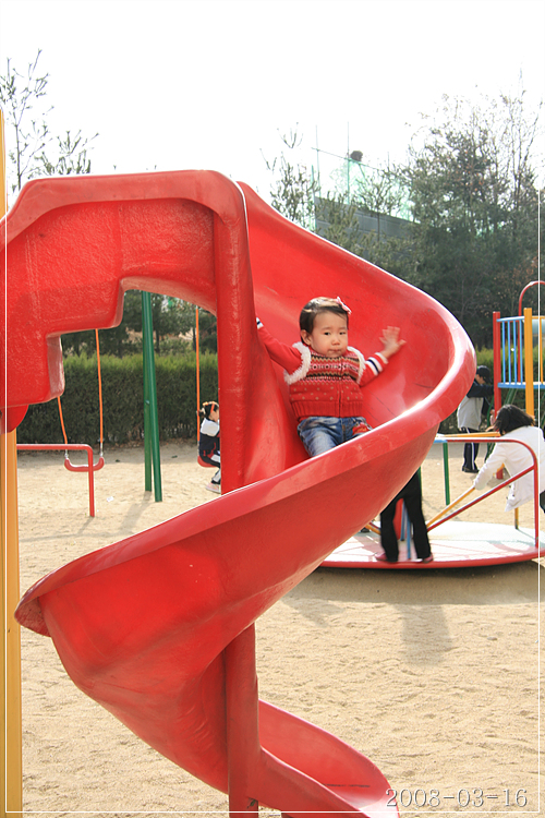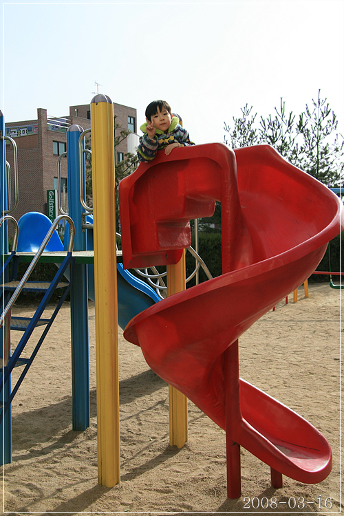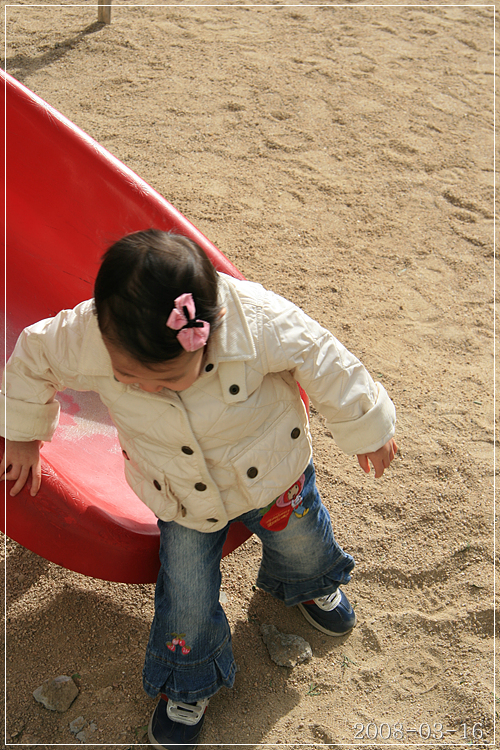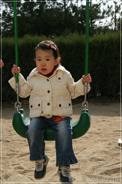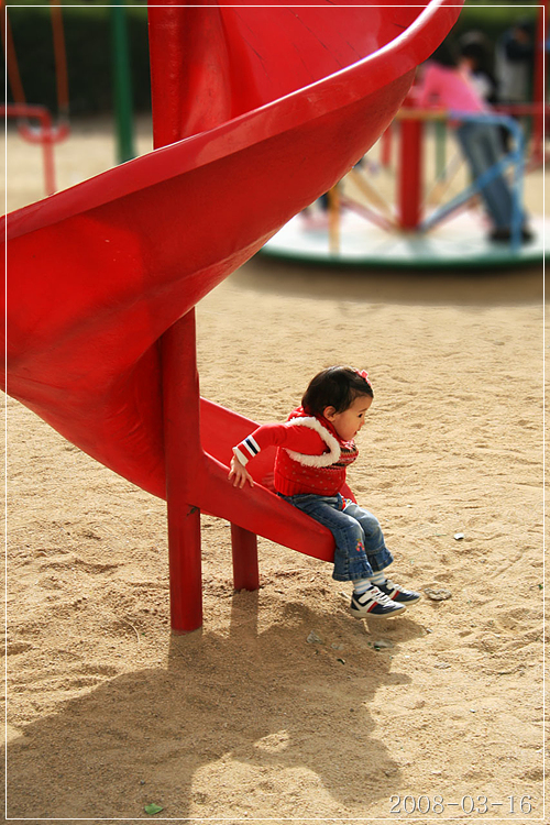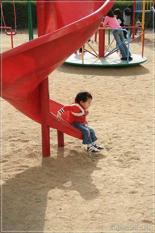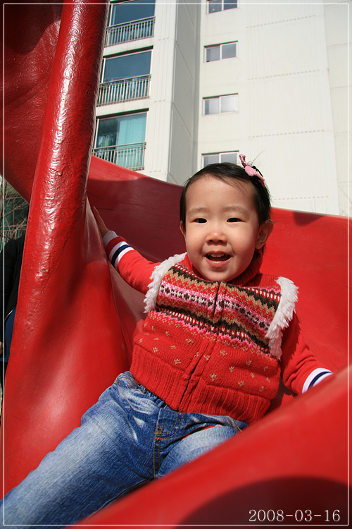 놀이터에 가다. By lbnkorea | 2008-03-16 0 Comment 겨우내 집안에만 있다가 모처럼 날이 풀려서 놀이터에 다녀왔다.정말 오랜만에 놀이터에 같이 나갔는데 그동안 소윤이가 많이 커서 이제는 그네랑 미끄럼틀을 혼자 타고 논다. 기특하게도.. ^^;