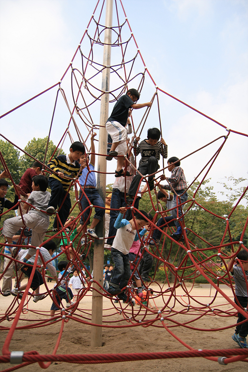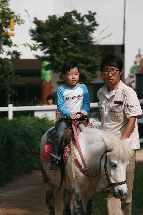 그사이에 애들이 많이 컸음을 확인할 수 있는 하루였다. 아직 위험하지 않을까 싶었던 그물모양 기어올라가는 놀이기구도 잘 올라가서 놀고, 말도 타고…