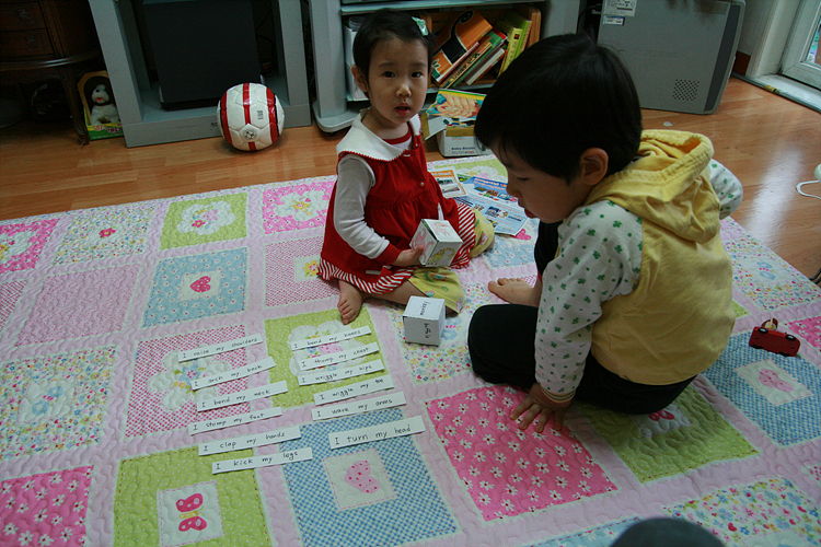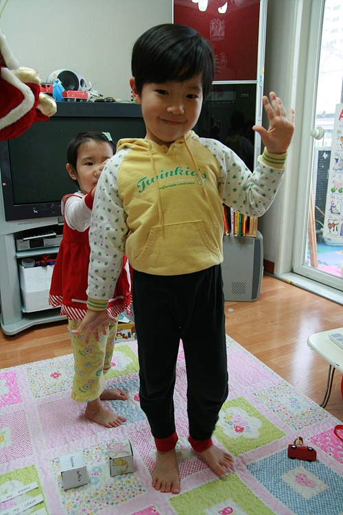 아이들 근황 By lbnkorea | 2008-12-27 0 Comment 상윤이나 소윤이나 부쩍 컸다. 상윤이는 이제 아가티를 거의 벗은 것 같고, 소윤이는 이제 막 욕심이 많아져서 울고 떼쓰고의 시기에 접어들었다. 상윤이는 요즘 엄마랑 영어공부하느라 이것 저것 재미있는 놀이를 많이 한다.