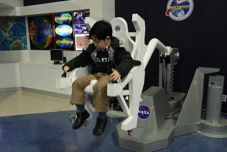 실내 – 우주, 로켓, 인공위성, 우주인등에 대한 사진과 모형들, 체험기구들이 있어서 호기심많은 아이들이 놀기 좋았다. 아이들이 직접 체험해볼 수 있는 놀이기구(?)들이 여럿 있고 사람이 많지 않아서 오래 기다리지 않고도 체험해볼 수 있어서 좋았다.