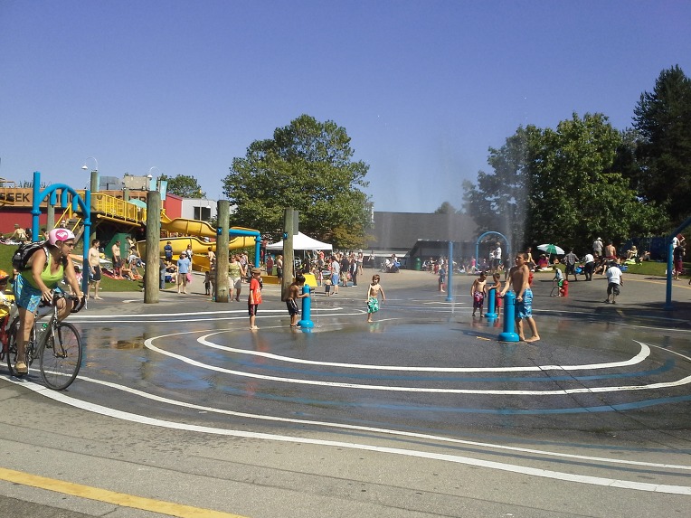 아이들 쇼핑후에 바로 뒤에 있는 물놀이할수 있는 공간이 있었습니다. 날도 더웠는데 마침 신나게 물놀이를 했네요..