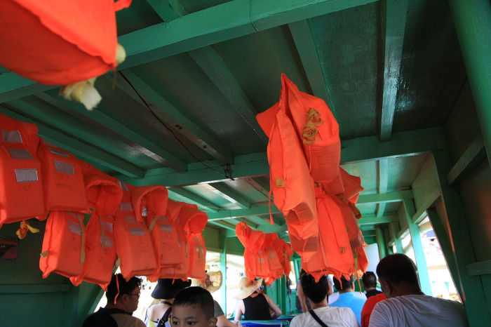 드디어 출발.. 배에 가로지른 횟대 사에에 낙싯줄같은 걸로 그물을 만들어 거기에 앉는다.