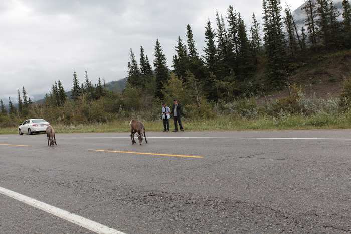 오~ 정말 사슴이 찻길 옆으로 다니는구나..